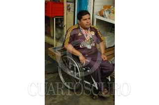 TLALNEPANTLA, EDO. DE MÉXICO, 05AGOSTO2009.- Atletas discapacitados del municipio de Tlalnepantla como Oswaldo Alcántara Cruz, atleta quien ha ganado 13 medallas de oro en torneos paraolìmpicos nacionales, necesitan desarrollarse en distintas áreas fuera del deporte. Siendo adecuado el otorgar becas para atletas paraolimpicos. FOTO: MARIO NULO/CUARTOSCURO.COM