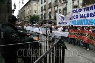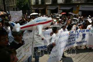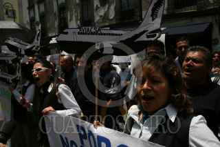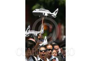 MÉXICO D.F., 05AGOSTO2009.- Empleados de la Aerolínea Aviacsa, protestaron a las afueras de las instalaciones del Senado de la Republica, esto por el paro de labores que les determino la Secretaria de Comunicaciones y Transportes (SCT). FOTO: GUILLERMO PEREA /CUARTOSCURO.COM