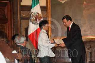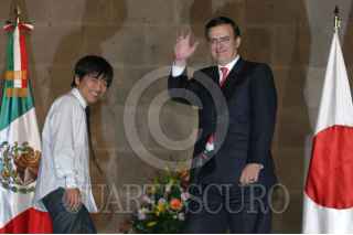 MÉXICO D.F., 06AGOSTO2009.- Marcelo Ebrad Casaubon, jefe del gobierno del D.F. entrego el certificado de huésped distinguido de la Ciudad de México al Arquitecto de origen Japonés Reyu Nishizawa, esto en las instalaciones del gobierno capitalino. FOTO: IVAN MENDEZ /CUARTOSCURO.COM