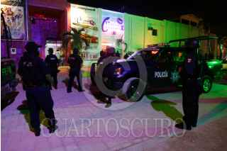 CANCÚN, QUINTANA ROO, 07AGOSTO2009.- Policias estatales de élite y agentes federales realizaron esta madrugada una inspección a los centros nocturnos que se localizan en la zona de tolerancia de Cancún conocida como ”el 21”, en el operativo se detuvo a seis mujeres extranjeras porque no pudieron acreditar su estancia en el pais o no mostraron permisos para trabajar. FOTO: AMARANTA PRIETO/CUARTOSCURO.COM