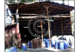 TAMAZULA, DURANGO, 07AGOSTO2009.- Elementos del ejercito mexicano encontraron un narcolaboratorio donde se fabricaban droga del tipo ice y cristal ubicado en 240 hectáreas de terreno en la comunidad Las Trancas, perteneciente a este muncipio. En el lugar se encontraron ambas drogas, 164 tambos de 200 litros cada uno, con capacidad para almacenar 32,800 litros de productos químicos, así como 18 vehículos, entre ellos un cargador frontal y varias cuatrimotos, y tambien vestuario tipo militar. Dentro del complejo se encontraron 22 instalaciones diversas para el procesamiento de drogas sintéticas y empaquetamiento de mariguana, las cuales comprenden dormitorios, cocinas, casas de descanso, bodegas para almacenaje y laboratorios, incluyendo una cabaña de lujo para el Jefe del Complejo. FOTO: SEDENA/CUARTOSCURO.COM