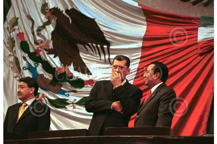 Los senadores del Partido por la Revolución Demogratica, (PRD), antes de comenzar sus trabajos, que duraron 20 minutos, en el inicio del periodo ordinario de sesiones en el Senado de la República, donde FOTO: Eunice Adorno/CUARTOSCURO.COM