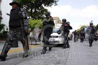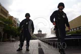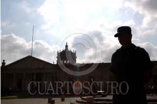 GUADALAJARA, JALISCO 08 AGOSTO 2009.- Un fuerte dispositivo de elementos de la Policia Federal del ejercito vigilan el perímetro del Instituto Cultural Cabañas, en Guadalajara, donde se llevará a cabo La Cumbre de Líderes de América del Norte donde se reuniran residente Calderón y su homólogo de EU, Barack Obama, y el primer ministro de Canadá, Stephen Harper FOTO: SÁSHENKA GUTIERREZ/CUARTOSCURO.COM