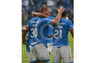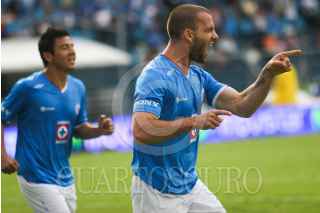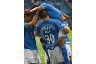 MÉXICO, D.F., 08AGOSTO2009.- Emanuel Villa, delantero del Cruz Azul, se convirtió en el verdugo de los Rayados del Monterrey, al anotarles en dos ocasiones, en el partido que se jugó en la casa celeste correspondiente a la tercera fecha del torneo de apertura 2009. FOTO: MOISÉS PABLO/CUARTOSCURO.COM
