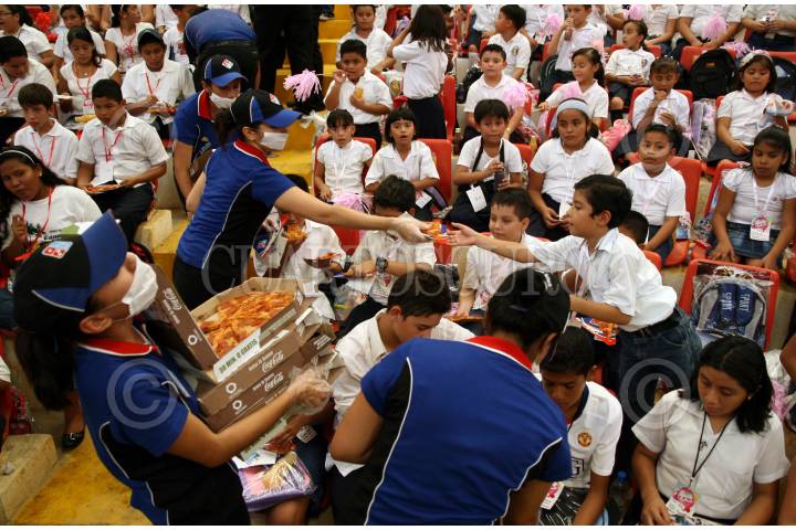 VILLAHERMOSA, TAABSCO, 08AGOSTO2009.- Debido a la máxima calificación (10) obtenida en el nivel primaria, la tarde de hoy un diario local festejo a más de mil educandos; niños y niñas de todo el estado con un show disfrutaron de un musical en donde les regalaron un extenso surtido de útiles escolares para este regreso a clases. Dicho evento máximo se realizo en el Palenque de Gallos. FOTO: MARCO POLO GUZMÁN HERNÁNDEZ/CUARTOSCURO.COM