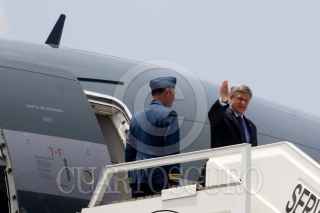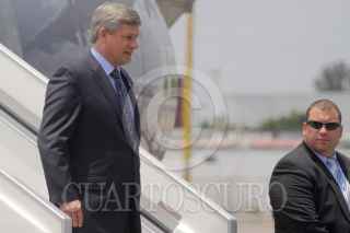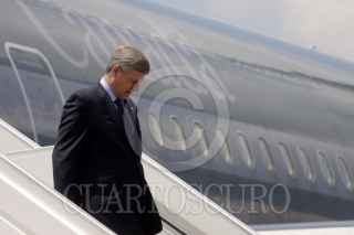 GUADALAJARA, JALISCO 09 AGOSTO 2009.- El primer ministro de Canadá, Stephen Harper a su arrivo al aeropuerto Miguel Hidalgo de la ciudad tapatia donde mas tarde se reunira con los presidentes Felipe Calderón y su homólogo de EU, Barack Obama en La Cumbre de Líderes de América del Norte y FOTO: SÁSHENKA GUTIERREZ/CUARTOSCURO.COM