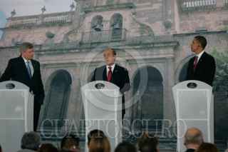 GUADALAJARA, JALISCO 10AGOSTO2009.- Conferencia de prensa conjunta de los presidentes de México, Felipe Calderón; y de Estados Unidos, Barack Obama; al termino de la reunión trilateral en el Instituto Cultural Cabañas. FOTO: SÁSHENKA GUTIERREZ/CUARTOSCURO.COM