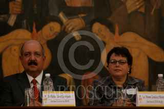 MÉXICO, D.F., 10AGOSTO2009.- El Dr. Rafael López Castañares, Secretario Ejecutivo de la Asociación Nacional de Universidades e Instituciones de Educación Superior (ANUIES) y Norma González Moreno, Directora del CECATI no. 66, durante la reunión de Formación de Directores de Educación Media Superior. FOTO: ADRIANA ALVAREZ/CUARTOSCURO.COM
