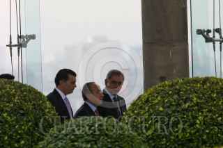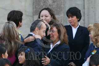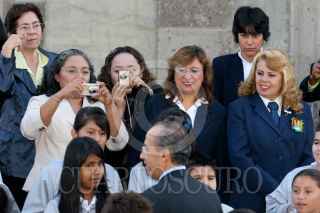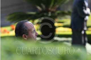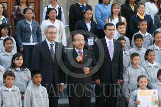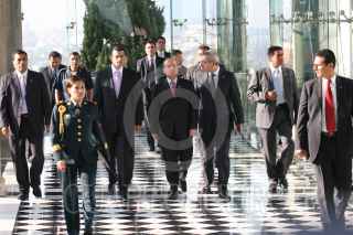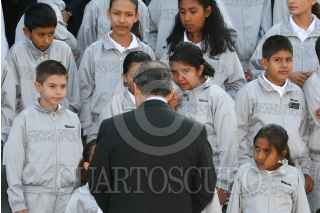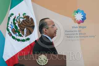 MÉXICO D.F., 12AGOSTO2009.- Felipe Calderón Hinojosa, Presidente de México, al termino de la ceremonia en la cual fueron entregados los premios del “Concurso de Dibujo Adiós a las Trampas” es observado por los estudiantes después de la foto oficial, esto en el Salón Alcazar del Castillo de Chapultepec. FOTO: GUILLERMO PEREA /CUARTOSCURO.COM