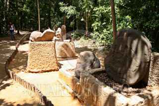 VILLAHERMOSA, TABASCO, 12AGOSTO2009.- La dirección del INAH estatal da a conocer que seis de las piezas más importante de la cultura Olmecas y que se encuentran exhibidas en el parque museo de la Venta realizaran un recorrido por el continente Europeo y Asiatico como parte de un intercambio cultural internacional. Entre las piezas que destacan para dicha acción a realizarse a inicios del 2010 se encuentra la Cabeza Colosal Olmecas y el Sacerdote, tan solo hay que recordar que a principios del año en curso las mencionadas piezas arqueologicas fueron dañanas en un acto profano y fueron reparadas en su tiempo. FOTO: MARCO POLO GUZMÁN HERNÁNDEZ/CUARTOSCURO.COM