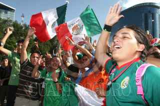 MÉXICO, D.F., 12AGOSTO2009.- Miles de personas festejaron en la glorieta del ángel de la independencia el triunfo de la selección de fútbol mexicana 2 goles a 1 ante la selección de Estados Unidos. FOTO: SAÚL LÓPEZ/CUARTOSCURO.COM