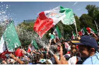 MÉXICO, D.F., 12AGOSTO2009.- Miles de personas festejaron en la glorieta del ángel de la independencia el triunfo de la selección de fútbol mexicana 2 goles a 1 ante la selección de Estados Unidos. FOTO: SAÚL LÓPEZ/CUARTOSCURO.COM