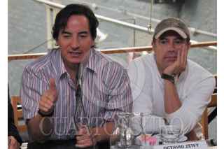 MÉXICO, D.F., 13AGOSTO2009.- Octavio Zeivy y Gabriel De Cervantes, durante la conferencia de la compañía Foco al Aire ya que se presentará del 20 al 22 de Agosto en el teatro de la Danza, con la puesta en escena Doña .G Neu-Lite es una exploración del movimiento corporal y las emociones cotidianas. FOTO: FRANCISCO SEGURA/CONACULTA/CUARTOSCURO.COM