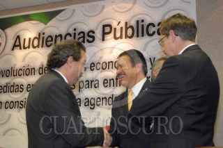 MÉXICO, D.F., 13AGOSTO2009.- Juan Molinar Horcasitas, Secretario de Comunicaciones y Transportes, Claudio X. González, empresario y Carlos Navarrete, coordinador de los senadores perredistas, durante las audiencias públicas "La evolución de la crisis económica y las medidas emergentes para enfrentarla que deben considerarse en la agenda legislativa", en la Torre del Caballito. FOTO: CUARTOSCURO.COM