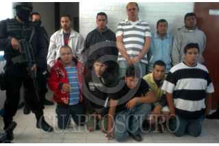 NEZAHUALCOYOTL, ESTADO DE MÉXICO, 13AGOSTO2009.- 10 presuntos delincuentes de la familia, fueron presentados en las instalaciones del Palacio Nezahualcoyotl, por elementos de la Policia Municipal. En poseción de armas largas y tres autos. Los cuales fueron detectados tras una revision de rutina en calles cercanas. FOTO: LUIS CARBAYO/CUARTOSCURO.COM