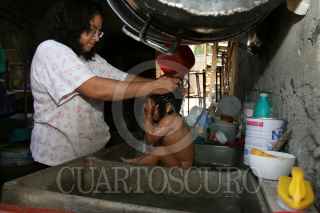 MÉXICO D.F., 14AGOSTO2009.- Habitantes de la colonia Peñón de los Baños, son de los afectados por el desbasto de agua, en cubetas y botes para ropa almacenan agua para sus necesidades mas básicas. El jefe de Gobierno del Distrito Federal, Marcelo Ebrard, puso en marcha el Sistema de Alerta del Servicio de Agua Potable, el cual ubica a la Ciudad de México en una fase naranja, que implica una situación delicada, ya que las presas del Sistema Cutzamala se encuentran en niveles por debajo de los mínimos históricos. El mandatario local advirtió que todos en el DF deben disminuir su consumo de agua para contribuir a ahorrar ese faltante de 71 millones de metros cúbicos, pues es un acto de responsabilidad con la ciudad, ya que de lo contrario no vamos a tener agua en febrero, marzo, abril y mayo del año que entra. FOTO: GUILLERMO PEREA / CUARTOSCURO.COM