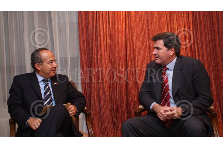 MONTEVIDEO, URUGUAY, 14AGOSTO2009.- Felipe Calderón Hinojosa, Presidente de México, durante una reunión que sostuvo con el candidato a la presidencia de la República de este país, Pedro Bordaberri, representante del Partido Colorado. FOTO: ALFREDO GUERRERO/CUARTOSCURO.COM