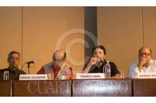 MÉXICO, D.F., 15AGOSTO2009.- En el margen de la muestra Fotográfica World Press Photo en el Museo Franz Mayer se llevo acabo la Mesa redonda en la que participaron los fotógrafos Marco Antonio Cruz editor de la Revista Proceso, Enrique Villaseñor, Federico Gama Fotoperiodista y Alfonso Molares Editor de la Revista Lunea Cornea. FOTO: HERMES QUETZALCOATL/CUARTOSCURO.COM