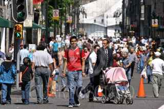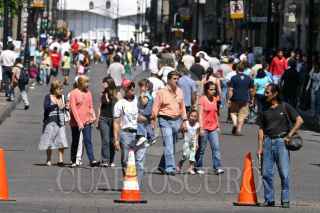 MÉXICO, D.F., 16AGOSTO2009.- En el marco de las celebraciones del Día del Peatón, la calle de Francisco I. Madero del Centro Histórico se convirtió en paso peatonal ya que desde este domingo los automóviles no podrán circular por esta la vialidad; esto ocurrirá durante los próximos cuatro fines de semana para después ser una medida permanente. FOTO: RODOLFO ANGULO/CUARTOSCURO.COM