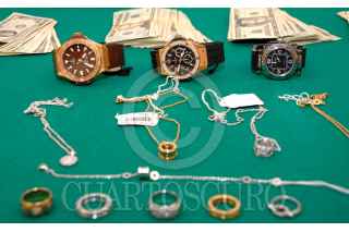 MÉXICO D.F., 17GOSTO2009.- Un lote de joyas, valuado en un millón 300 mil pesos, robado la madrugada del pasado 1 de junio, fue recuperado por elementos de la Policía Judicial, adscritos a la Fiscalía Desconcentrada en Venustiano Carranza, como parte de las investigaciones realizadas en el marco del operativo Aeropuerto Seguro. A través de los videos grabados por las cámaras instaladas en la Terminal 2 del Aeropuerto Internacional de la Ciudad de México, se observó a un sujeto, más tarde identificado como Yuri Nicolás Pérez Olán, alias “El Nico” quien ingresó al local afectado, disfrazado con una peluca y un cubre bocas. FOTO: LUIS CARBAYO /CUARTOSCURO.COM