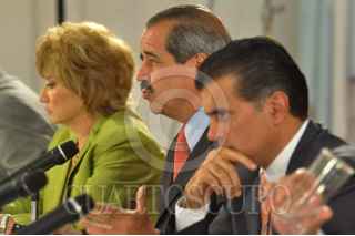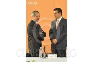 MÉXICO, D.F., 17AGOSTO2009.- José Angel Cordova Villalobos, Secretario de Salud; Alonso Lujambio Secretario de Educación; y Ernesto Cordero, Secretario de Desarollo Social; durante la Reunión Plenaria del Consejo Nacional de Autoridades Educativas, que sostuvieron para cordinar un plan para la prevención del rebrote de influenza H1N1 durante el proximo ciclo escolar FOTO: EDUARDO MORALES/CUARTOSCURO.COM