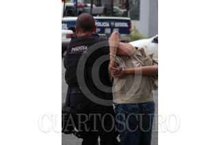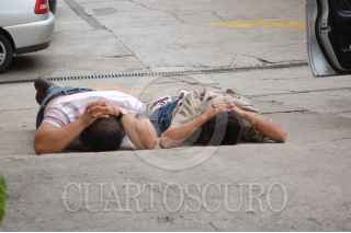 MORELIA, MICHOACÁN, 20AGOSTO2009.- Elementos de la Policía Federal detuvieron en la colonia Chapultepec de Morelia, a dos sujetos que portaban una granada de fragmentación y dos armas cortas, en la acción no hubo disparos de arma de fuego, sin embargo los detenidos fueron sometidos a golpes, quienes dijeron llamarse Carlos Amador Alvarado García de 28 años y Javier Guerrero Sánchez de 30 años. FOTO: LEOVIGILDO GONZÁLEZ/CUARTOSCURO.COM