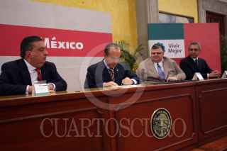 MÉXICO, D.F., 21AGOSTO2009.- Fernando Gómez Mont, secretario de Gobernación, Felipe Calderón Hinojosa, presidente de México, Agustín Carstens Carstens, secretario de Hacienda y Crédito Público y Salvador Vega Casillas, secretario de la Función Pública, durante la firma del Decreto por el que se reforman y adicionan los artículos 75, 115, 116, 122, 123 Y 127 de la Constitución Política, esto tuvo lugar en el Salón Manuel Ávila Camacho de la residencia oficial de Los Pinos. FOTO: ALFREDO GUERRERO/CUARTOSCURO.COM