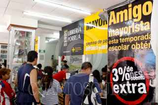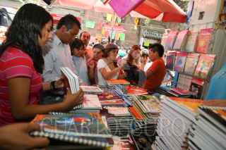 MÉXICO, D.F., 22AGOSTO2009.- En los establecimientos en donde se venden cuadernos para el regreso a clases del Centro Histórico se aprecian las ofertas y rebajas intentando así atraer a sus posible clientes. FOTO: MOISÉS PABLO/CUARTOSCURO.COM