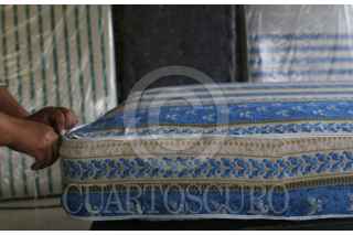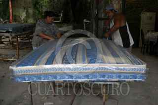 TEPIC, NAYARIT, 22AGOSTO2009.- Finalmente envuelven los colchones para su venta. FOTO: IVAN STEPHENS/CUARTOSCURO.COM