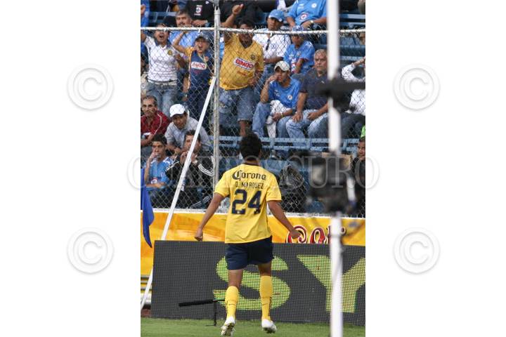 MÉXICO, D.F., 22AGOSTO2009.- Enrique Meza, director técnico de la Maquina Celeste del Cruz Azul saluda a Jesús Ramírez de las Águilas del Ámerica previo al juego en que las Aguilas derrotaran 3 - 2 al conjunto celeste en el estadio Azul en partido de la jornada 5 del torneo Apertura 2009. FOTO: RODOLFO ANGULO/CUARTOSCURO.COM