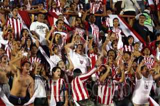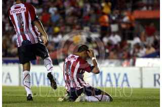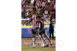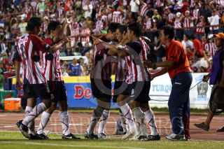 CANCUN, QUINTANA ROO, 22AGOSTO2009.- Javier Hernandez de las Chivas del Guadalajara festeja su gol ante los Potros de Quintana Roo, el marcador 2-1 favor Atlante en el estadio Andres Quintana Roo. FOTO: AMARANTA PRIETO/CUARTOSCURO.COM