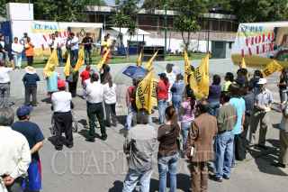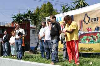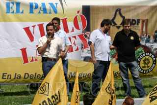 MÉXICO D.F., 23AGOSTO2009.- El diputado electo Victor Hugo Romo y Manuel Oropeza, secretario general del PRD-DF, durante un mitin informativo en donde dieron a conocer que el PAN violo la ley en la delegación Miguel Hidalgo; este acto se realizo a las afueras de la estación del metro San Joaquin. FOTO: RODOLFO ANGULO/CUARTOSCURO.COM