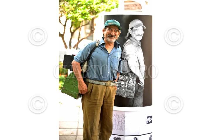 COLIMA, COLIMA, 24AGOSTO2009.- Mariano Aparicio (derecha), acompañado de Silverio Cavazos Ceballos, gobernador del estado, durante la inauguración de la exposición fotográfica ¡Oye Vale!, proyecto del fotógrafo mexicano, la cual retrató a 10 mil 64 colimenses. La muestra de la exposición se exhibe en el Jardin Libertad del centro de esta ciudad. FOTO: CUARTOSCURO.COM