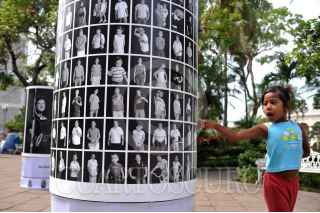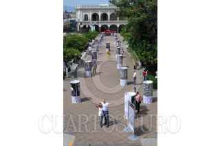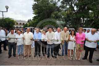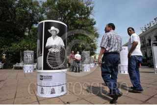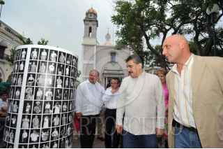 COLIMA, COLIMA, 24AGOSTO2009.- Mariano Aparicio (derecha), acompañado de Silverio Cavazos Ceballos, gobernador del estado, durante la inauguración de la exposición fotográfica ¡Oye Vale!, proyecto del fotógrafo mexicano, la cual retrató a 10 mil 64 colimenses. La muestra de la exposición se exhibe en el Jardin Libertad del centro de esta ciudad. FOTO: CUARTOSCURO.COM
