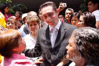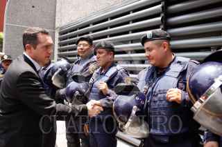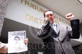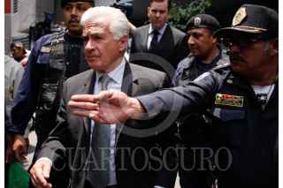 MÉXICO, D.F., 26AGOSTO2009.- Demetrio Sodi, candidato electo panista en la delegación Miguel Hidalgo, sale custodiado por granaderos de las instalaciones del Tribunal Electoral del DF, en donde sostuvo una reunión con autoridades electorales para resolver el supuesto rebase de los gastos de campaña en su candidatura. La medida fue tomada ya que afuera se encontraban vecinos de la delegación Cuajimalpa, apoyando a su candidato el perredista Adrián Ruvalcaba, quien resultó perdedor en los comicios pasados, aunque actualmente se encuentra impugnando el proceso electoral ya que su contrincante el panista Carlos Orvañanos, también se le acusa de haber gastado más en su candidatura. FOTO: MOISÉS PABLO/CUARTOSCURO.COM