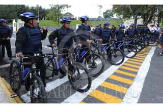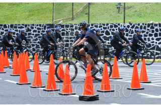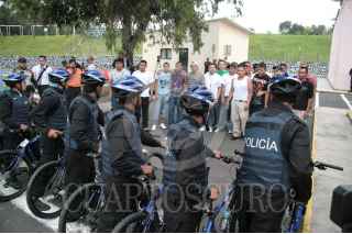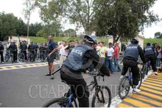 MÉXICO, D.F., 26AGOSTO2009.- Con el objetivo de mejorar las técnicas que desempeñan los elementos del Agrupamiento de bici-patrulleros de la Secretaría de Seguridad Pública del Distrito Federal (SSP-DF), un total de 30 uniformados reciben un Curso de Formación de Instructores en Manejo Defensivo y Ofensivo de Bicicleta, impartido por especialistas pertenecientes al Departamento de Policía del Condado de Los Ángeles, California, Estados Unidos. FOTOS: LUIS CARBAYO/CUARTOSCURO.COM