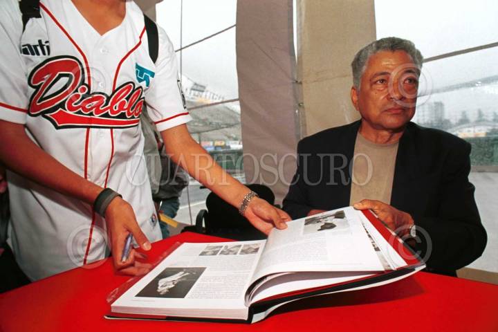 Alfredo Ortíz, el mejor pitcher zurdo en la história del beisbol de la liga mexicana y ex jugador de los Diablos Rojos, regala autógrafos a los fanáticos. FOTO: Oswaldo Ramírez/CUARTOSCURO.COM