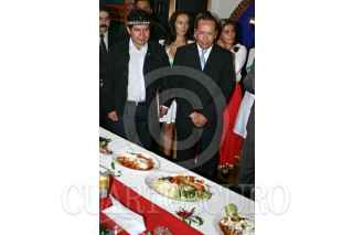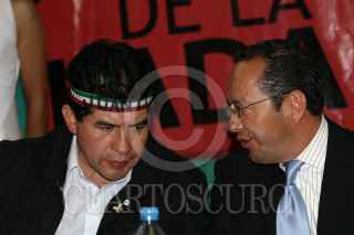 MÉXICO, D.F., 27AGOSTO2009.- Rafael Acosta "Juanito", delegado electo de Iztapalapa y Longinos Garcia Rios, delegado de Iztapalapa durante la presentación de la Feria de la Enchilada que se realizará del 4 al 13 de septiembre próximo, con alrededor de 300 variedades del platillo mexicano. FOTO: RODOLFO ANGULO/CUARTOSCURO.COM