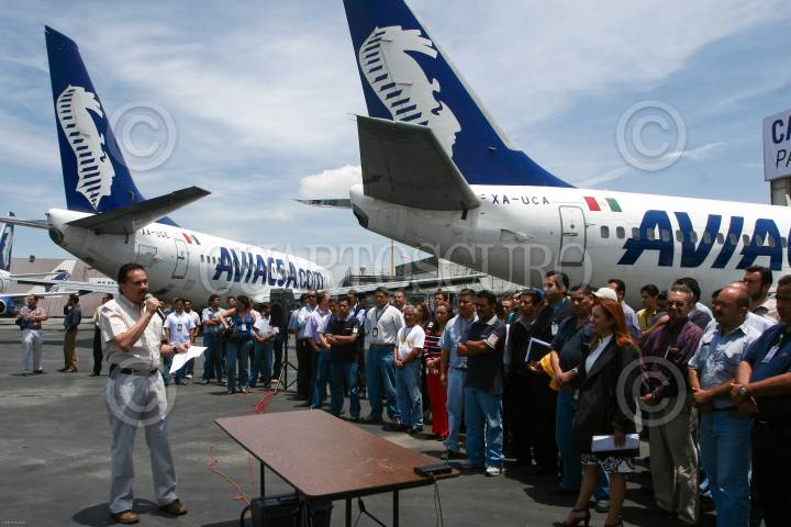 MÉXICO, D.F., 27AGOSTO2009.- Trabajadores de Aviacsa, montaron una manta en el hangar de dicha aerolínea con un mensaje para el presidente de la república para que les sea respetado en articulo 8 contitucional. FOTO: SAÚL LÓPEZ/CUARTOSCURO.COM