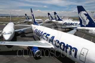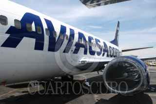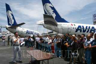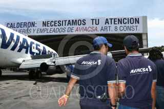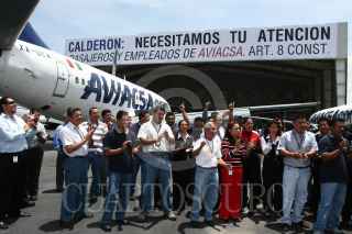 MÉXICO, D.F., 27AGOSTO2009.- Trabajadores de Aviacsa, montaron una manta en el hangar de dicha aerolínea con un mensaje para el presidente de la república para que les sea respetado en articulo 8 contitucional. FOTO: SAÚL LÓPEZ/CUARTOSCURO.COM