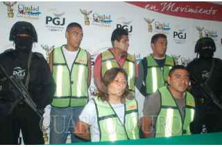MÉXICO, D.F., 27AGOSTO2009.- La oportuna intervención de elementos de la Policía Judicial adscritos a la Agencia Central de Investigación, permitió la captura de cinco presuntos integrantes de una banda de “chineros”, entre ellos una mujer, que operaba en el Centro Histórico y, hasta el momento, se le relaciona con diversas averiguaciones previas. Adrián Gómez Plata, Francisco Jesús Murillo Marín, José Sarael Ramírez Carranza, Rodolfo Daniel Navarrete Ibarra e Irma Cruz Hernández, son los implicados en este tipo de ilícitos, quienes despojaban de sus pertenencias a sus víctimas y tras golpearlas, las dejaban inconscientes. FOTO: LUIS CARBAYO/CUARTOSCURO.COM