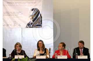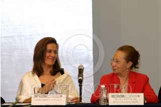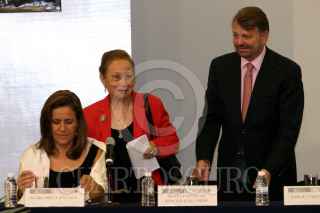 MÉXICO, D.F., 27AGOSTO2009.- Margarita Zavala, esposa del presidente Felipe Calderón; Silvia Pavón de Rincón Gallardo, viuda de Gilberto Rincón Gallardo y Jorge Castañeda durante el homenaje por motivo del primer aniversario luctuoso del político Gilberto Rincón Gallardo que se celebro en la sala Manuel M. Ponce del Palacio de Bellas Artes. FOTO: RODOLFO ANGULO/CUARTOSCURO.COM