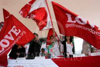 MÉXICO, D.F., 28AGOSTO2009.- En la glorieta de Insurgentes, se llevo acabo el lanzamiento de la campaña 'love' que la organiza la Secretaria de Salud del DF y la asociacion AIDS Healthcare Fundation, el motivo de la misma es la promoción uso y distribución del condón de manera gratuita y realizar pruebas rápidas de VIH. FOTO: ENRIQUE ORDÓÑEZ/CUARTOSCURO.COM