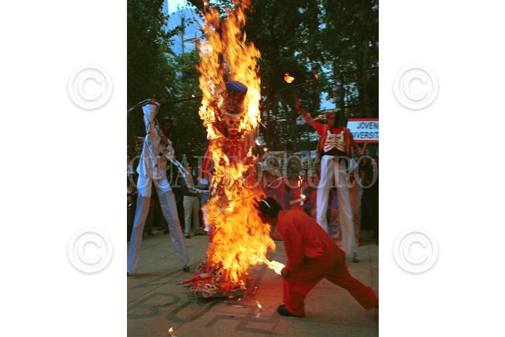 Una segunda protesta con al menos mil manifestantes, se concentró en la embajada de Estados Unidos para exigir "la salida de las tropas norteamericanas de Irak y de todo el Medio Oriente". Esta manifestación ha sido la más importante hasta ahora realizada en México en respaldo a la jornada mundial contra la guerra, convocada el sábado en otros países del mundo. FOTO: Sandra Perdomo/CUARTOSCURO.COM