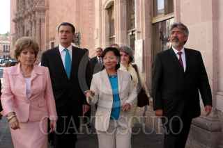 ZACATECAS, ZACATECAS, 28AGOSTO2009.- Alonso Lujambio, Secretario de Educación; Amalia García, gobernadora del Estado y Enrique Villa Rivera, rector del Instituto Politécnico Nacional caminan por las calles del centro. FOTO: IVAN STEPHENS/CUARTOSCURO.COM