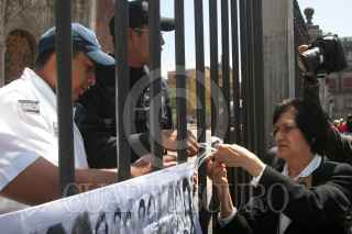 MÉXICO, D.F., 28AGOSTO2009.- La senadora Rosa Ibarra de Piedra, encabezo como cada año una protesta a las afueras de la Catedral Metropolitana en protesta por la desaparición de sus hijos por motivos políticos FOTO:RICARDO CASTELAN/CUARTOSCURO.COM
