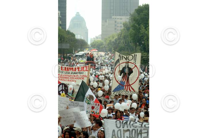 Miembros de la clase política mexicana, como los senadores Demetrio Sodi, Jesús Ortega del PRD y Cesar Camacho Quiroz del PRI ,aprovecharon la ocasión para hacer proselitismo para diferentes partidos políticos, mientras que en otra marcha que se movía del Zócalo a la Embajada de EU en México, colectivos como el Frente Zapatista de Liberación Nacional (FZLN) y el Frente Democrático Popular (FNDP), que pidieron "un juicio mundial contra (el presidente estadounidense) George Bush".FOTO: Oswaldo Ramírez/CUARTOSCURO.COM