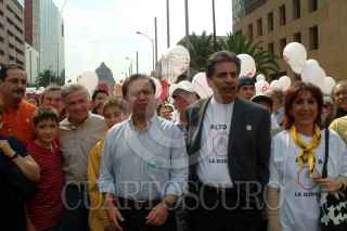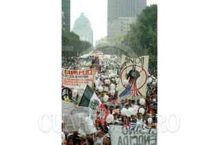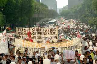 Miembros de la clase política mexicana, como los senadores Demetrio Sodi, Jesús Ortega del PRD y Cesar Camacho Quiroz del PRI ,aprovecharon la ocasión para hacer proselitismo para diferentes partidos políticos, mientras que en otra marcha que se movía del Zócalo a la Embajada de EU en México, colectivos como el Frente Zapatista de Liberación Nacional (FZLN) y el Frente Democrático Popular (FNDP), que pidieron "un juicio mundial contra (el presidente estadounidense) George Bush".FOTO: Oswaldo Ramírez/CUARTOSCURO.COM