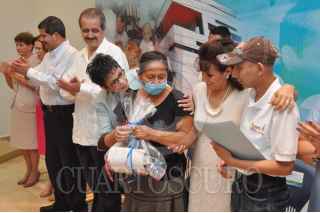 VILLAHERMOSA, TABASCO, 28AGOSTO2009.- José Angel Cordova Villalobos, Secretario de Salud, en compañia del Secretario de Salud Estatal, Luis Felipe Graham, y de las directoras del voluntariado, durante el programa de "Sigamos Aprendiendo en la Escuela", donde se donaron útiles a los niños enfermos del hospital de Oncología. FOTO: EDUARDO MORALES/CUARTOSCURO.COM