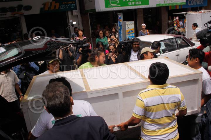 MÉXICO, D.F., 29AGOSTO2009.- Siete carrozas fúnebres recorrieron las calle de la capital del Auditorio Nacional a el Foro Scotiabank, ubicado en Moliere 328 en la colonia Polanco, como parte de una campaña publicitaria para promover la exposición "Las Momias de Guanajuato, Muestra Itinerante", que será exhibida a partir del 3 de septiembre en dicho lugar. Los cuerpos asignados para la exhibición han sido presentados en nueve ciudades de nuestro país contando con la visita de más de novecientas mil personas. En esta exposición serán exhibidas 24 piezas provenientes de la colección del Muyeso de las Momias de Guanajuto y 12 piezas más de la colección del Museo de las Momias de Celaya. FOTO: MOISÉS PABLO/CUARTOSCURO.COM